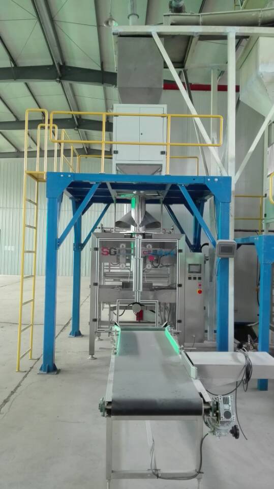 Linie automata de cantarit si ambalat material granular (inclusiv peleti).Dupa cantarirea materialului, ambalarea se face in saci ce sunt formatati la dimensiunea dorita, din folie de polietilena aflata in rola cu latimea de max.1080 mm. Avantaje : - nu aveti nevoie sa cumparati stive de saci din polyetilena, deoarece instalatia de ambalare poate confectiona automat sacii sub forma de pachete din polyetilena transparenta sau imprimata, la dimensiuni corespunzatoare cu volumul materialului cantarit. Domeniul de cantarire : 15,0 - 25,0 Kg/sac, (conform densitatii volumetrice specifice materialului ambalat). Viteza de cantarire : 8 - 15 saci/min. (aprox.100 tone/8 ore).